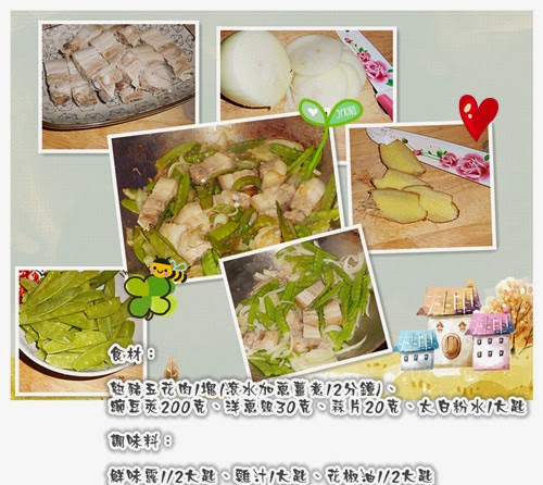 並加蓋燜煮 再加入豌豆莢入鍋拌炒均勻